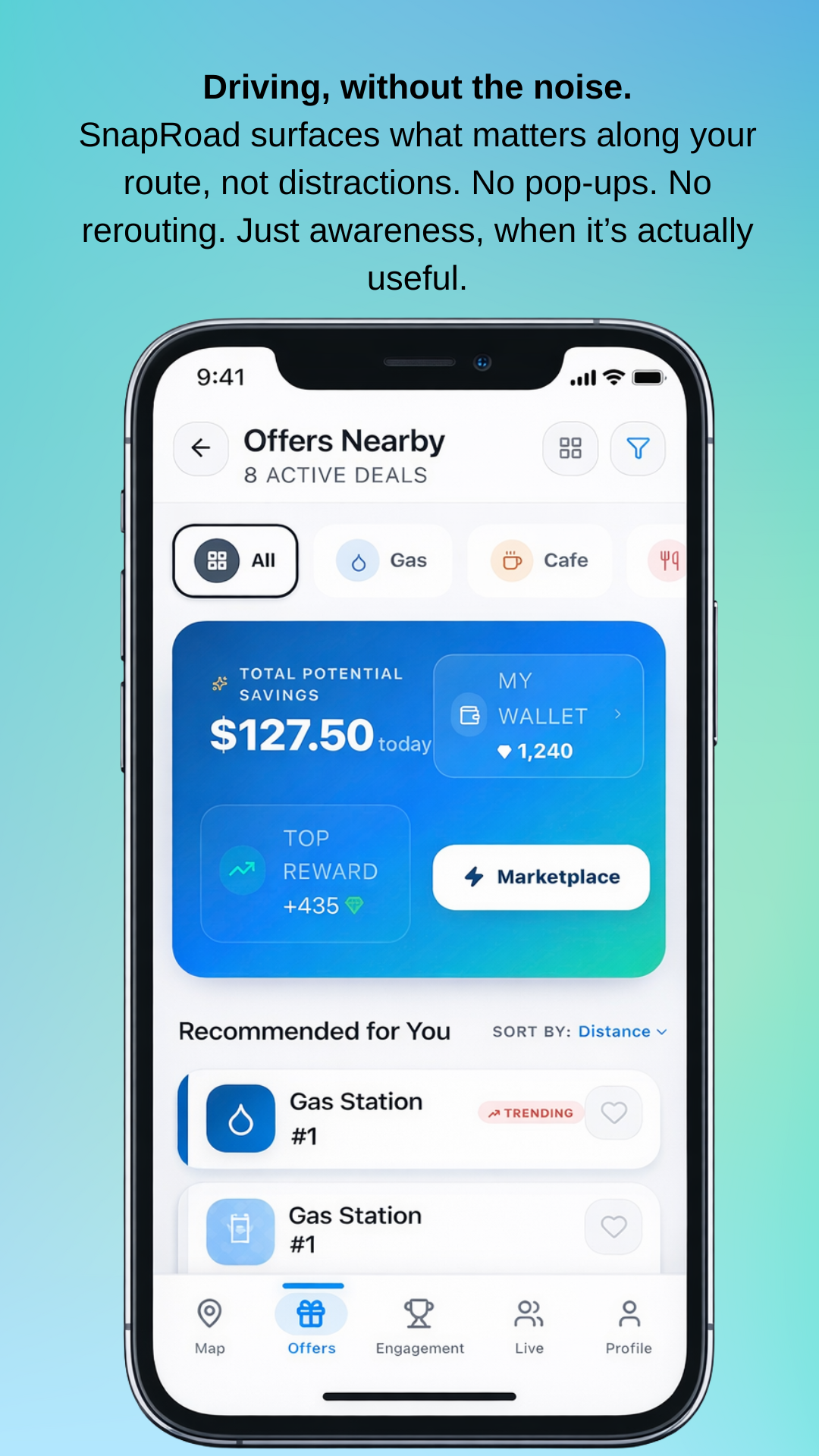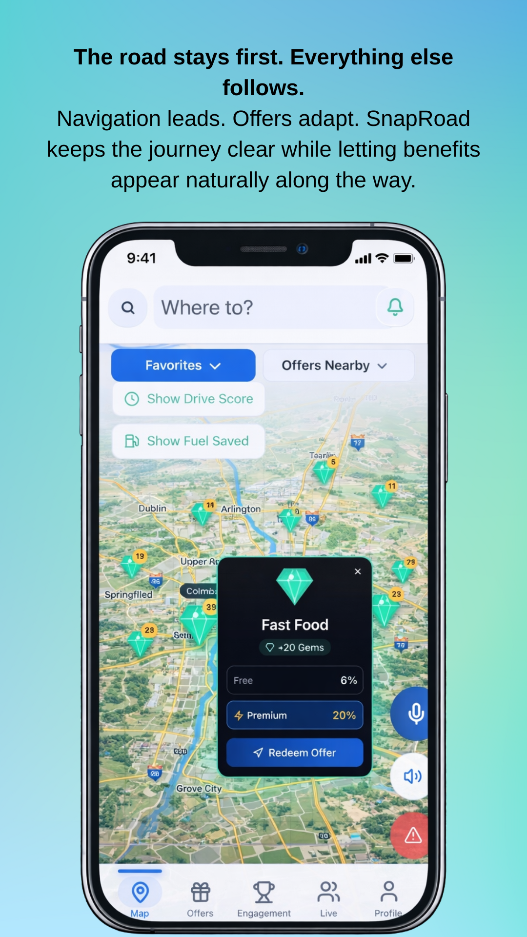 Browse local deals and earn Gems for every safe mile you drive